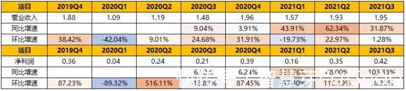 【摘要】:从单季度增速来看,2021Q3,实现营业收入1.95亿元,同比增长31.87%,净利润0.42亿元,同比上升103.33%,主要是其将部分闲置募集资金进行现金管理,理财收益